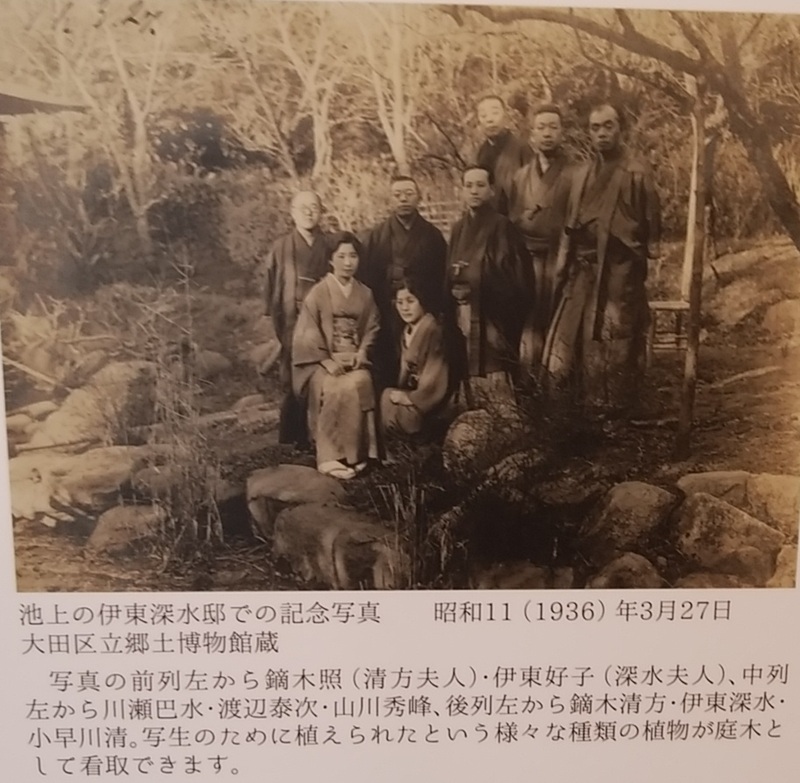 先日池上梅園に梅を見に行きました。その梅園のとなりに池上本門寺があります。そこの休憩所に立ち寄ったところ、そのなかに鏑木清方の名前と写真をみつけました。上記の画像の中です。鏑木清方は樋口一葉の小説の挿絵を描いていた日本画家です。 その門人に伊東深水がいました。その深水が昭和5年から池上本門寺の北にあった池上梅園の南側の敷地に住んでいたそうです。それでこの写真が残っていたのでしょう。池上梅園も池上本門寺も広くてとてもすがすがしいところでした。偶然鏑木清方の名前をみつけてとても嬉しかったです。