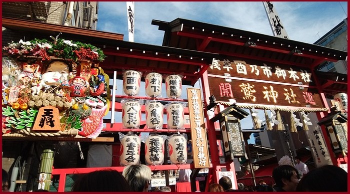樋口一葉さんの小説「たけくらべ」に出てくる酉の市は浅草の鷲神社です。バスでこの前を通るので、無視できず12日の酉の日にバスをおりて行ってみました。大小様々な熊手を色々な業者が色々の熊手を売っていてとても活気があり、元気がでました。一葉さんの小説の中では「田楽をみるようだ」とかお金が稼げるという熊手を作っているのに、このあたり(吉原のあたり)には長者がみあたらないというような皮肉な文章が出てきますが、さすが一葉さん、観察がするどいなあと感心する次第ですが、貧しかった一葉さんならではの見方だったのでしょうね。